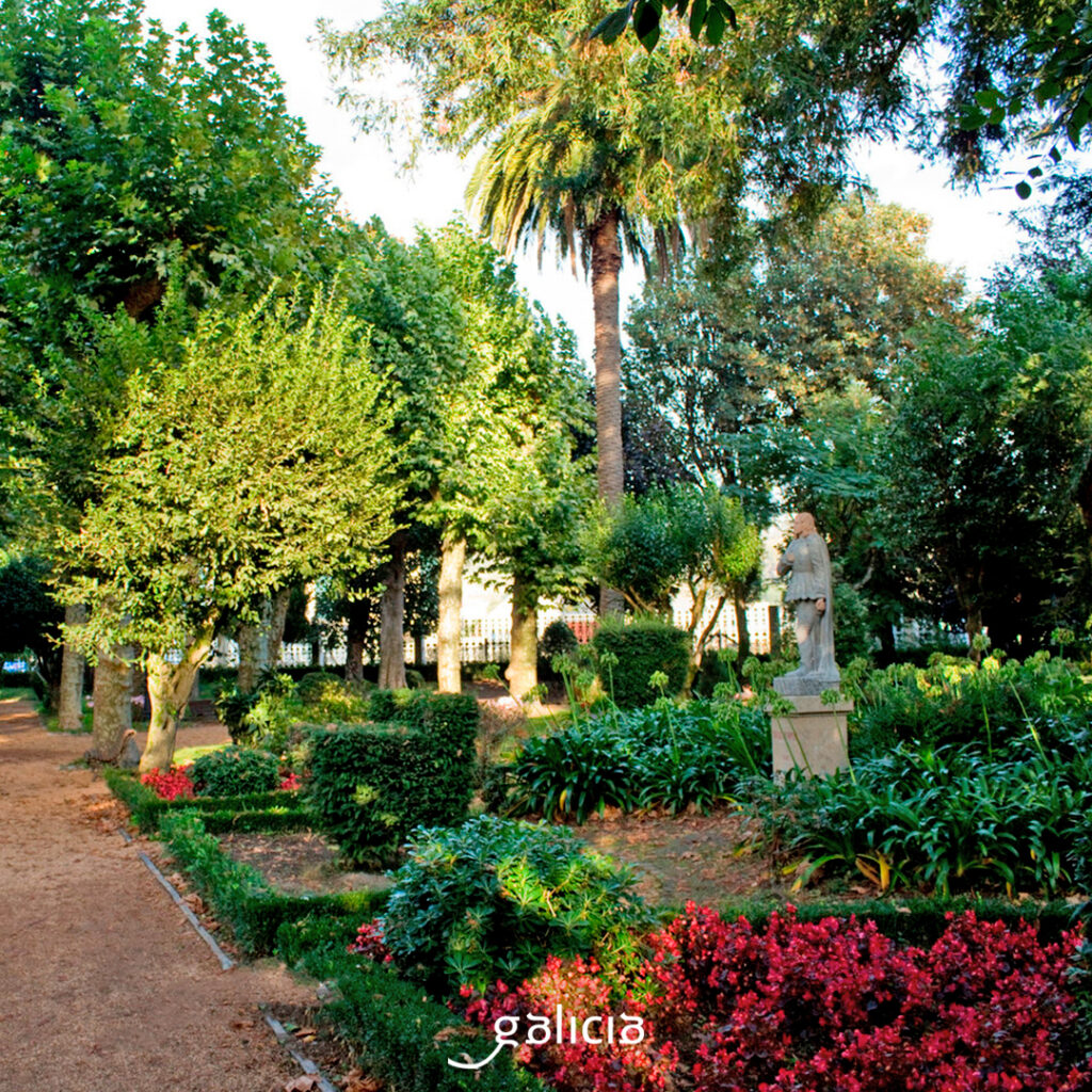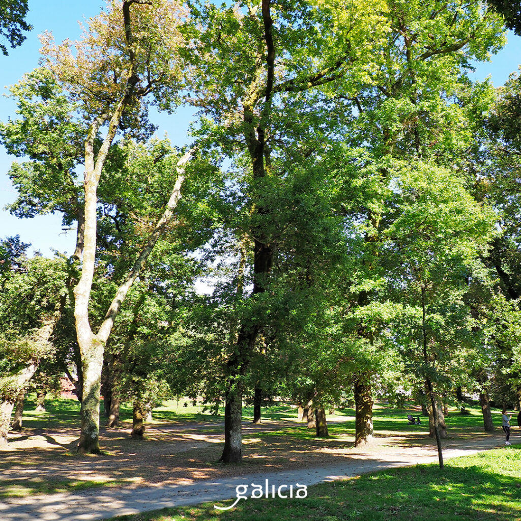Jardín botánico y Carballeira de Caldas de Reis (Caldas de Reis, Pontevedra). Qué buena idea tuvo el ayuntamiento de Caldas en 1883 al hacer este parque en el centro de la ciudad, en los márgenes del río Umia. Era la época de esplendor de los balnearios, y tuvo muy buena acogida por los visitantes a la villa termal. Además, coincide con el camino portugués, así que es un paseo bastante internacional. Se trata de un jardín de categoría, que cuenta con la certificación de destino botánico del Observer Sciencie Tourism y con la Q de calidad turística como espacio público singular. En el arboreto, compuesto por especies autóctonas y foráneas, encontramos 200 ejemplares, entre ellos la araucaria angustifolia y la cunninghamia lanceolata, árboles singulares. La carballeira cuenta con unos 200 carballos, y está catalogada como formación de árboles singulares. La colección de camelias también es de gran valor. El paseo tiene otros atractivos además de los vegetales: malecón, fuente, esculturas, bancos, pasatiempo…