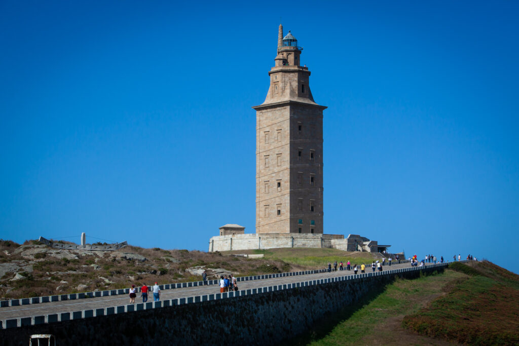 Torre de Hércules. En toda a cidade da Coruña está presente a torre, xa porque está á vista, xa porque impregna todo o que ten que ver con ela, pois está no escudo, nos farois, nas bandeiras, nunha morea de marcas e logotipos… Do mesmo xeito, na Torre está presente A Coruña enteira. Só temos que subir os 234 chanzos que nos levan até o andar máis alto, para descubrir a vista máis completa da península coruñesa. E, por suposto, o Atlántico, no que se distinguen as rías de Ares e Betanzos e Ferrol e as illas Sisargas fronte a Malpica. Ollando cara abaixo, o parque escultórico da Torre. Non sería xusto que este patrimonio fose só galego, así que, desde 2009 tamén pertence ao mundo enteiro. En inverno, sempre que o clima o permita, pódese visitar de luns a domingo entre as 9:45 e as 17:00 h, sendo a derradeira venda de entradas ás 15:45 h.