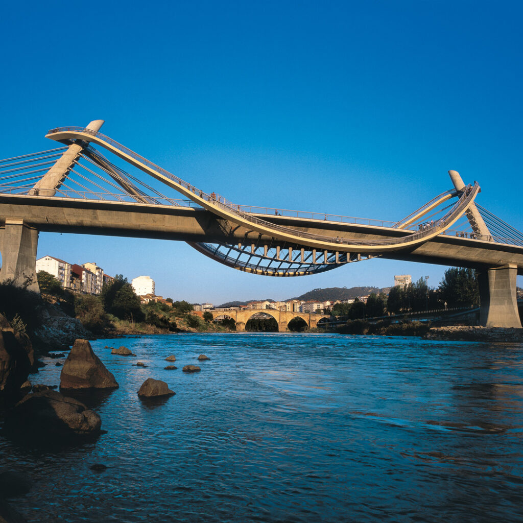 Ponte do Milenio. O novo milenio chegou a Ourense con nova ponte. Mais non unha ponte calquera. Este novidoso proxecto para encarar o 2000 non só permite cruzar o Miño a pé ou en vehículo, senón que nos deixa gozar dun paseo sobre augas, coches e a mesma ponte, como se camiñásemos sobre as nubes, envoltos nunha estrutura sinuosa desde a que contemplar a cidade con calma no seu punto máis alto. O proxecto, asinado por Álvaro Varela e executado por Juan M. Calvo, naceu coa vocación de converter a ponte nun centro de reunión máis da cidade, integrándose plenamente nela. Tamén é coñecida como ponte da Gaivota.