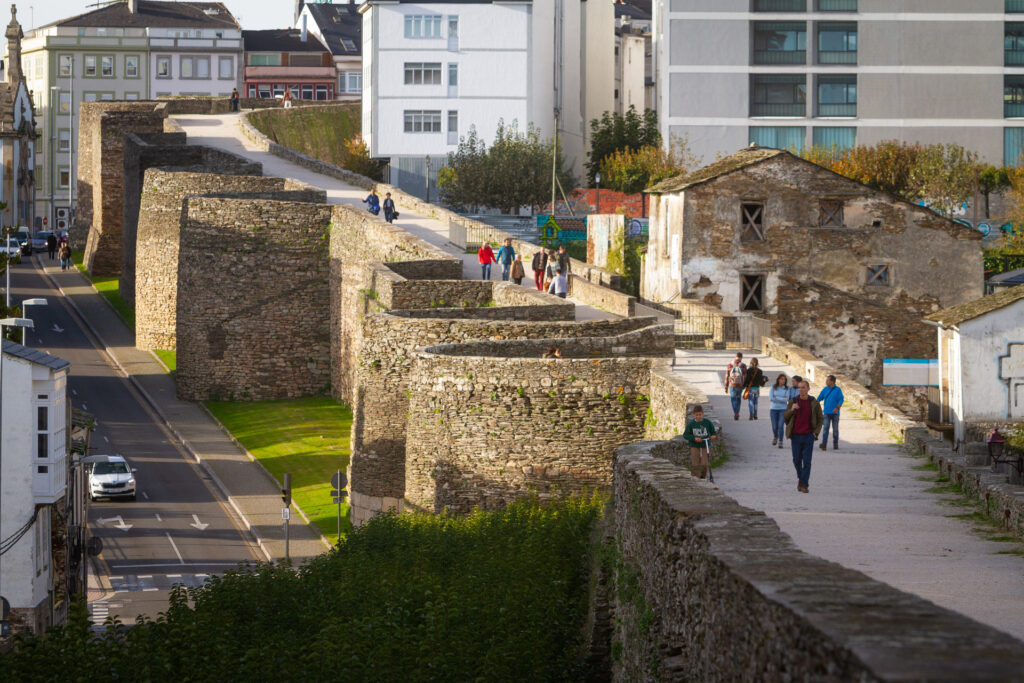 Muralla de Lugo. Imaxinarían os romanos que as súas obras ían durar tanto? Case parece unha milagre que despois de tantos séculos a muralla de Lugo siga en pé, e tampouco con excesivas diferencias coa orixinal, polo menos no que se refire ao seu perímetro, que se conserva intacto. Emporiso, na orixe tiña 85 torres elevadas con grandes fiestras na parte superior, das que só fican 71 cubos, que rematan no adarve. A torre da Mosqueira é a única que conserva restos das xanelas. O adarve mide máis de 4 m de ancho e por el discorre un paseo desde o que captamos totalmente a estrutura da cidade de Lugo, a parte nova e a parte vella. Desde aquí arriba, a muralla é como un cofre que agocha os tesouros da capital: o centro histórico, coa catedral, a praza de Santa María, o Museo Provincial… Por certo, esta herdanza romana tamén é patrimonio da humanidade, desde o ano 2000.