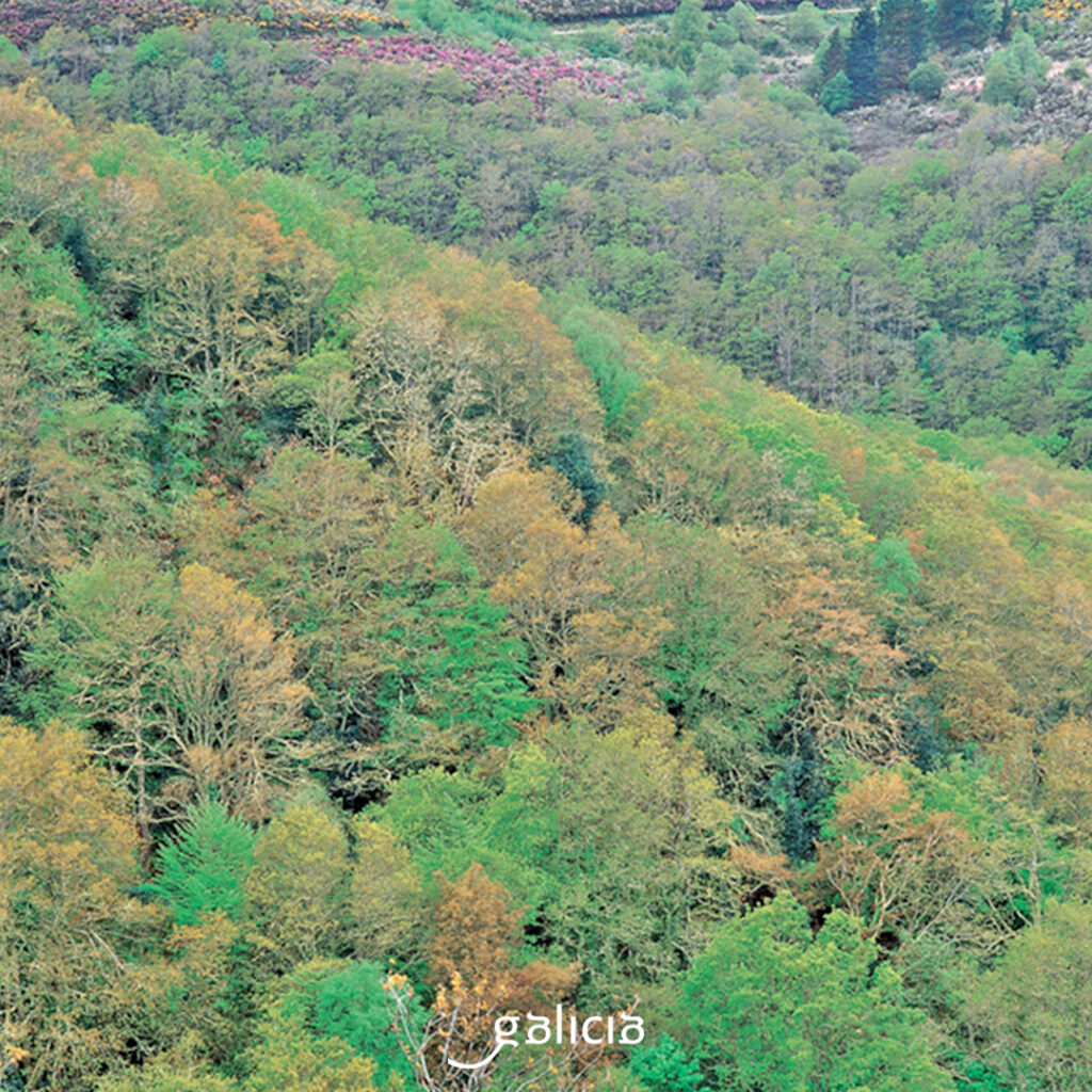 Galician forests are usually mixed deciduous, of the Atlantic type, so the range of colors is very rich. There are many fragas, original primary forests, thick, with little human intervention, such as the fragas do Eume, Catasós or A Marronda, with trees with a lot of branches that produce a humidity and characteristic habitats. On the other hand, the devesas are populated by trees with more space between them, not so dense, such as the devesa da Rogueira or Nimo. There are also the soutos, where chestnut trees predominate, and the carballeiras, with carballos (oaks).
