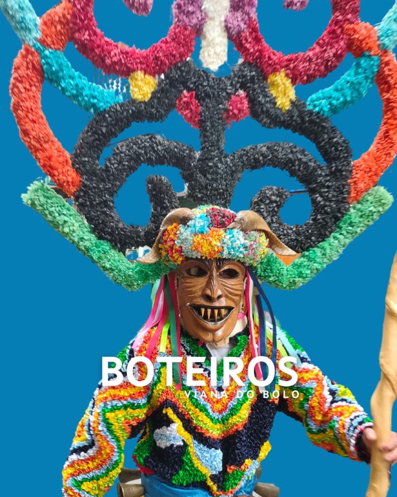 En Viana do Bolo, el Entroido es una celebración de gran arraigo que combina tradición, música y gastronomía. El personaje central es el “Boteiro”, quien lidera los “Folións”, comparsas de 30 a 40 personas que recorren las calles tocando tambores e instrumentos agrícolas para espantar a los malos espíritus. El Boteiro se distingue por su máscara y un alto tocado de alambre y cartón adornado con papeles de colores, así como por un traje confeccionado con cintas de seda multicolores. Porta una “moca”, un palo decorado que utiliza para dar saltos y abrir paso al folión. La festividad también destaca por la “Festa da Androlla”, una celebración gastronómica en la que se degusta este embutido típico de la región.
