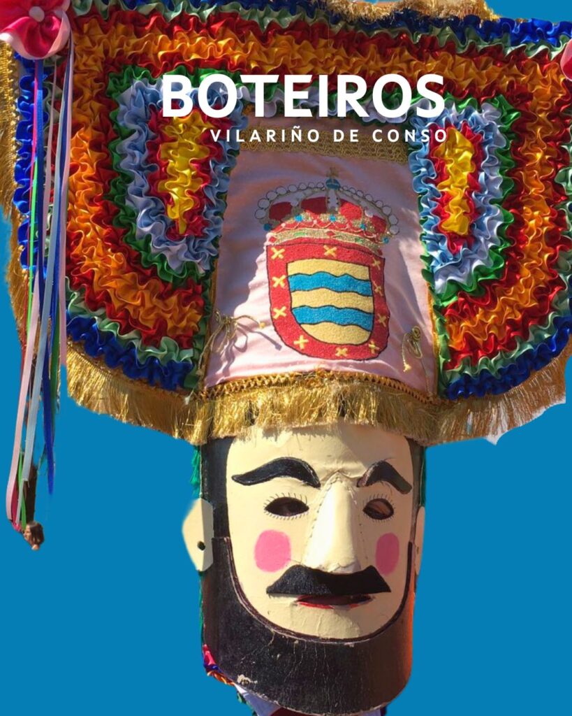 En Vilariño de Conso, el Entroido se caracteriza por la presencia de los “Boteiros” y los “Fulións”. Los Boteiros, con sus máscaras de cartón y tocados coloridos, lideran los desfiles y dan paso a los Fulións, comparsas que, con sus tambores e instrumentos agrícolas, llenan las calles de música y ritmo. El día grande es el sábado, con el desfile de los Fulións y la Fiesta del Cabrito, una celebración que combina tradición, música y gastronomía en un ambiente festivo y participativo.