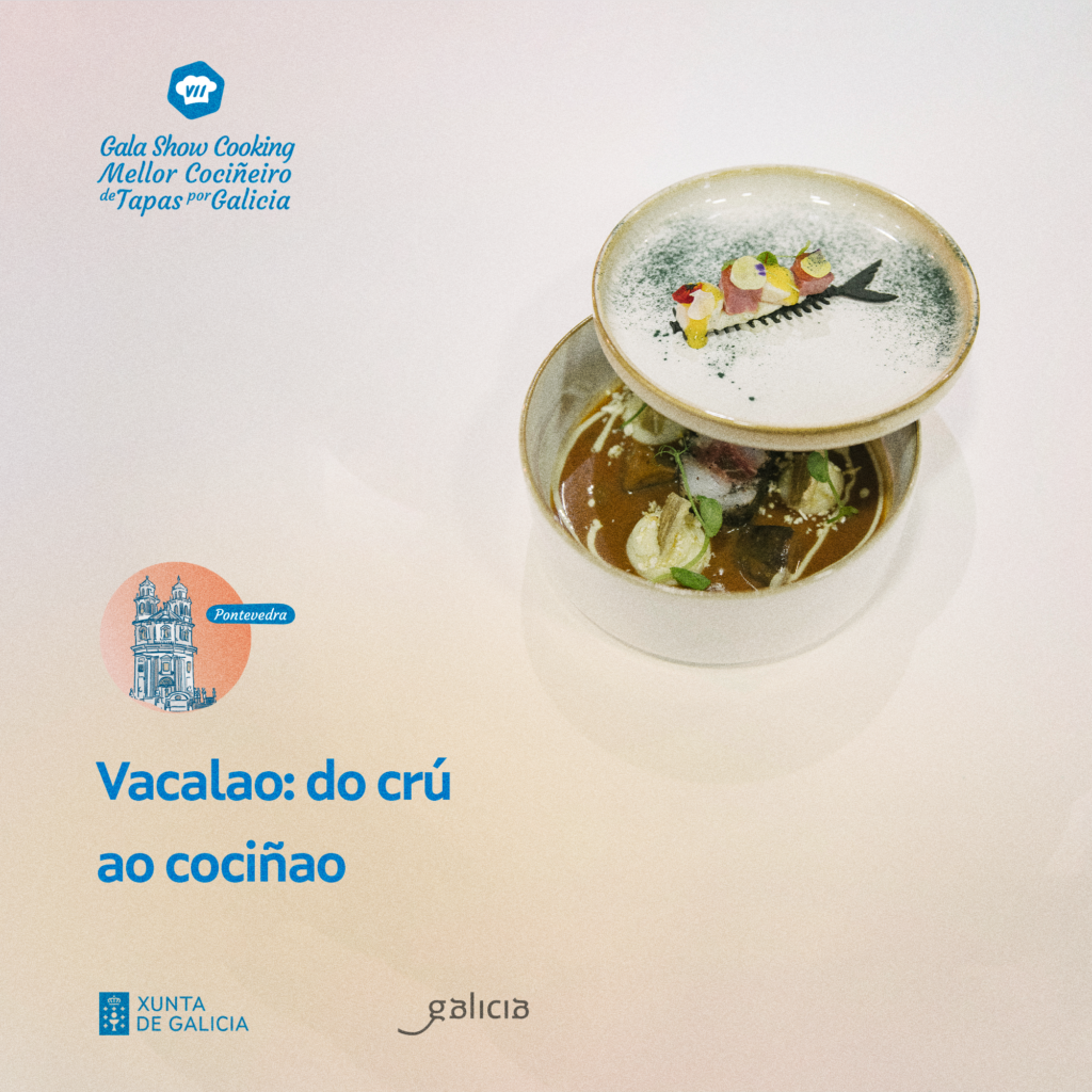 Ganador del concurso Pontetapas nos últimos 6 años, para Rubén “ganar es vivir en el recuerdo del cliente, nos da presencia de forma más constante y la gente siempre se acuerda de nosotros”. En la edición de 2023 del Mejor Cocinero de Tapas por Galicia, el pontevedrés se enfrentará a los otros seis cocineros con Vacalao Del crú al cociñao, de la que durante lo concurso local sirvió más de 2.000 tapas. El plato es un homenaje a la vaca y al bacalao y tiene dos alturas: la superior con vaca madurada y bacalao marinado y una inferior que es un mosaico con los mismos productos cocinados y un caldo de ternera con setas. El mosaico es inspiración de la cocina escandinava, y fue una apetencia personal de Rubén.
