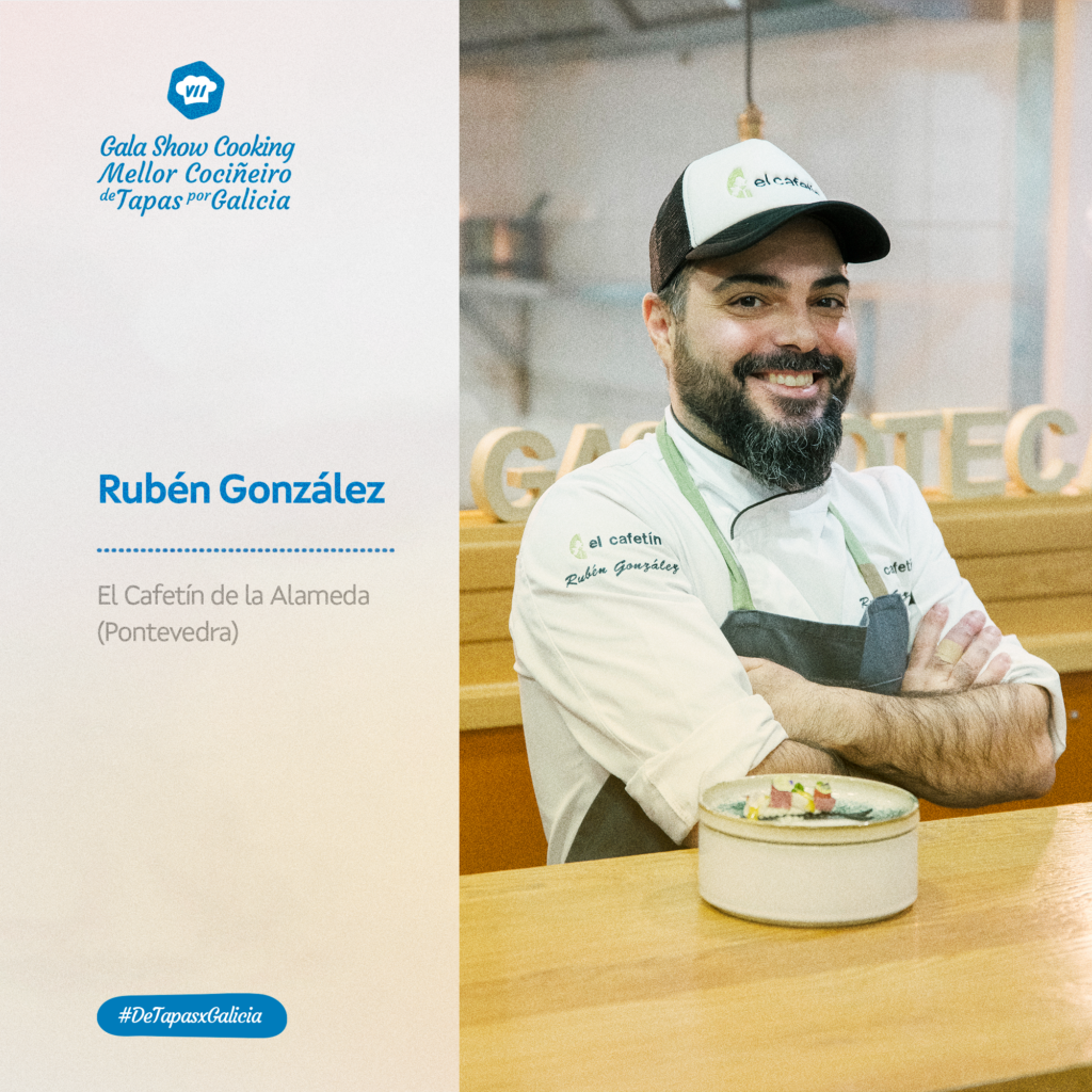 A Rubén González la cocina le viene en la sangre. Nació en una familia de oficio hostelero y se curtió en fogones como los del Parador de Baiona o el Cenador de Salvador Gallego, en Madrid. Decidió volver a la ciudad del Lérez y, junto con la familia, convirtió Él Cafetín en un de los lugares de referencia para los foodies de la ciudad.