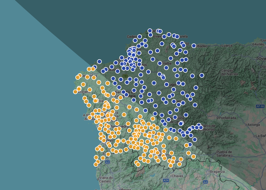 Provincia de contraste: predominio del eclipse parcial con totalidad en algunos municipios. Esta se concentra especialmente en el este y sureste (Valdeorras y zonas de montaña), mientras que en la ciudad de Ourense y gran parte del resto del territorio el eclipse será parcial.