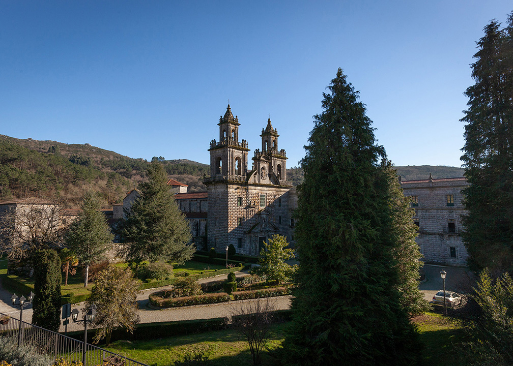 Conocido popularmente como el “Escorial Gallego”, el monasterio destaca por su monumentalidad. Una imponente fachada barroca da paso a un conjunto formado por tres claustros de distintos estilos arquitectónicos y una de las iglesias abaciales más elevadas y sobresalientes del Císter en España.