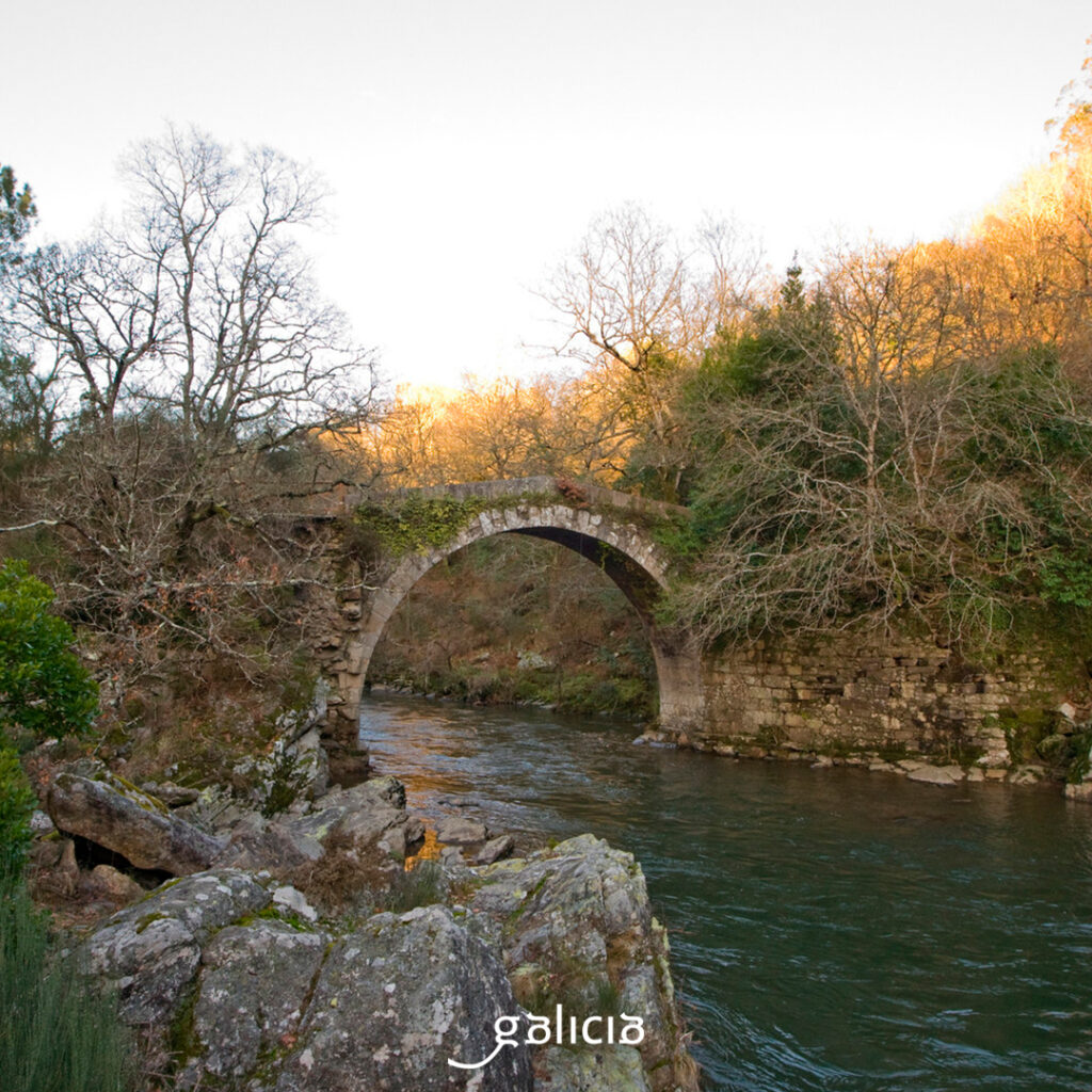 Ponte do Demo. En un rincón aislado entre los árboles, en medio de un meandro cerrado del río Deza, encontramos el monasterio benedictino de San Lourenzo de Carboeiro, del siglo X. A unos cien metros del edificio, hay un puente de origen medieval sobre el río para acceder al monasterio que, además, comunica los municipios de Silleda y Vila de Cruces. Es conocido como Ponte do Demo (Puente del Demonio). ¿Tan cerca del monasterio y con ese nombre? ¿Cómo es eso? Por lo visto, el puente original era bastante delicado y no resistía bien las crecidas del Deza, por lo que los monjes tenían que reconstruirlo continuamente. No se les ocurrió otra cosa que encargarle al Demonio, que tenía fama de buen constructor, un puente resistente. Pero, cuando se trata con el Demonio, siempre hay que dar algo a cambio. En este caso, él haría el puente en un fin de semana, pero todas las almas que lo cruzasen antes de terminarlo, serían para él.