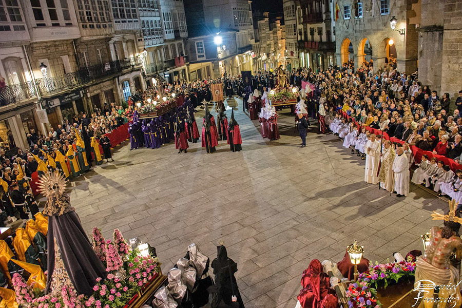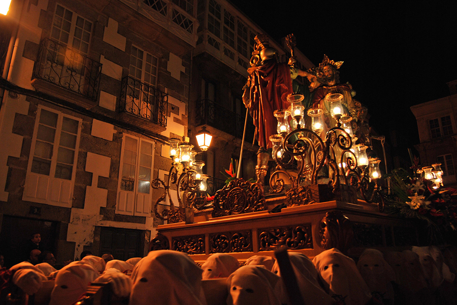 En Ferrol, se vive una fiesta que ya cuenta con el reconocimiento de Interés Turístico Internacional. Desde el Domingo de Ramos hasta el de Resurrección, la gente sale a la calle para ver los pasos de sus cinco cofradías: Angustias, Dolores, Merced, Santo Entierro y Soledad.